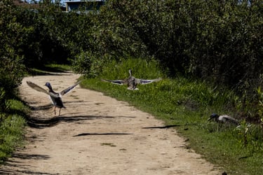 We saw a bunch of birds amongst the wild flowers and swamp.