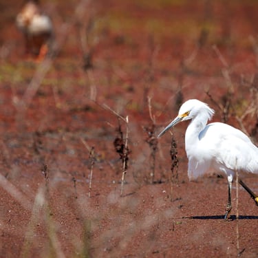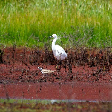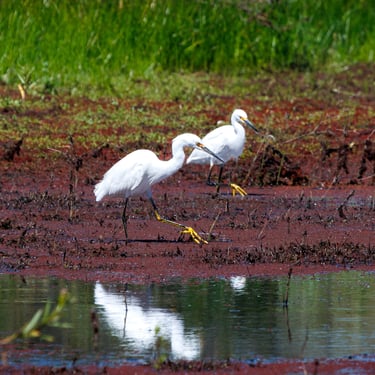 There was a pair of Great Egrets feeding in the open, seemingly apathetic to the other birds and their activities.